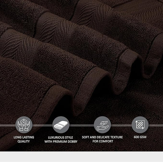 Oakias Premium Towel Set 600 GSM 8 Piece Brown - 100% Ring Spun Cotton Highly Absorbent Towels Set - Super Soft Bathroom Towel Set - Hotel Quality Double Stitched Hem - Ideal for Hotels, Spa, Gyms