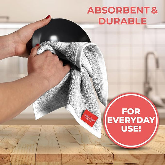 TEXTILOM 100% Turkish Cotton 4 Piece Luxury Washcloth Towel Set for Bathroom & Kitchen, Thick & Super Soft & Highly Absorbent & Quick Dry for Face and Hand- Light Grey