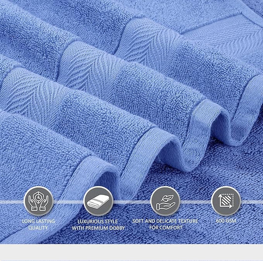 Oakias Premium Towel Set 600 GSM 8 Piece Blue - 100% Ring Spun Cotton Highly Absorbent Towels Set - Super Soft Bathroom Towel Set - Hotel Quality Double Stitched Hem - Ideal for Hotels, Spa, Gyms