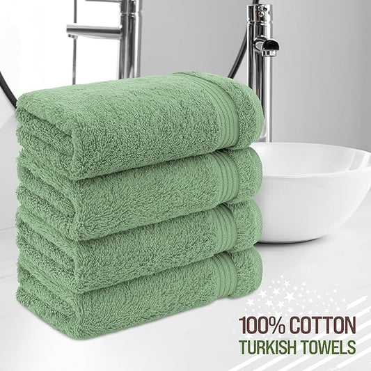 American Veteran Towel, Hand Towels for Bathroom Set of 4, 100% Cotton Turkish Hand Towel Sets, Soft Hand Face Towels, Sage Green Hand Towels
