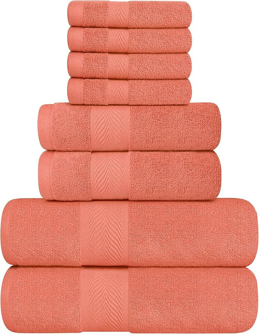 Oakias Premium Towel Set 600 GSM 8 Piece Sea Salt - 100% Ring Spun Cotton Highly Absorbent Towels Set - Super Soft Bathroom Towel Set - Hotel Quality Double Stitched Hem - Ideal for Hotels, Spa, Gyms