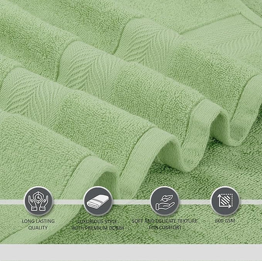 Oakias Premium Towel Set 600 GSM 8 Piece Green - 100% Ring Spun Cotton Highly Absorbent Towels Set - Super Soft Bathroom Towel Set - Hotel Quality Double Stitched Hem - Ideal for Hotels, Spa, Gyms