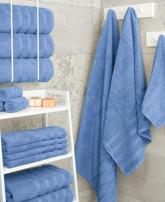 American Soft Linen Luxury 4 Piece Bath Towel Set, 600 GSM 100% Cotton Turkish Bath Towels for Bathroom, 27x54 in Extra Large Bathroom Shower Towels, Electric Blue