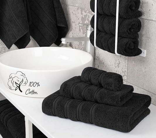 American Soft Linen Luxury 6 Piece Towel Set, 2 Bath Towels 2 Hand Towel 2 Washcloths, 600 GSM 100% Cotton Turkish Towels for Bathroom, Black Towel Sets