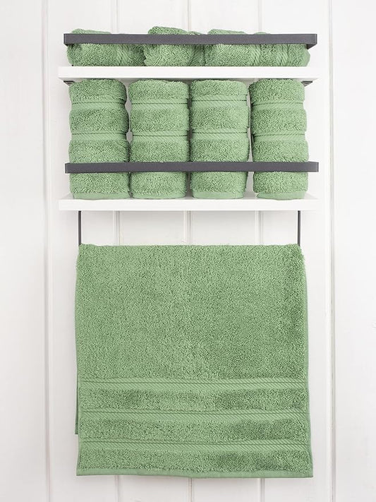 American Soft Linen Luxury 6 Piece Towel Set, 2 Bath Towels 2 Hand Towel 2 Washcloths, 600 GSM 100% Cotton Turkish Towels for Bathroom, Sage Green Towel Sets