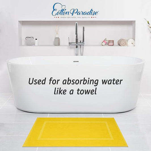 Cotton Paradise 100% Cotton Bath Mats for Bathroom Floor Set of 2 Pack, 20x34 Soft Absorbent Washable Quick Dry Tub Bathmat, Yellow Towel Bath Mat