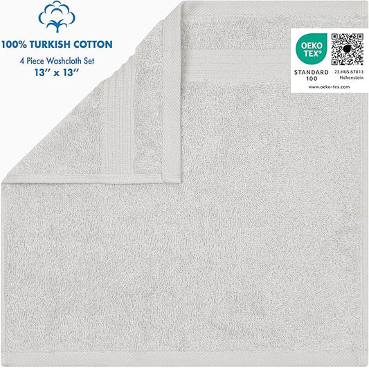 Cotton Paradise 100% Cotton Turkish Washcloth Set for Bathroom, 4 Piece Soft Absorbent Small Hand Face Towels Wash Rags, Silver Grey