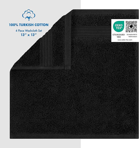 Cotton Paradise 100% Cotton Turkish Washcloth Set for Bathroom, 4 Piece Soft Absorbent Small Hand Face Towels Wash Rags, Black