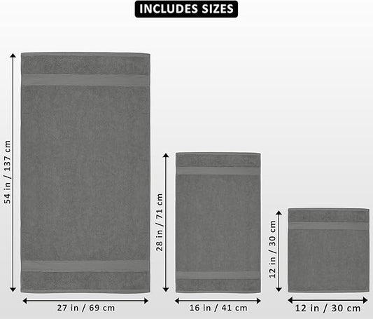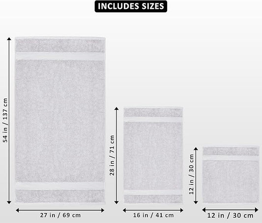 White Classic Luxury Bath Towel Set of 8 Pieces - 100% Turkish Cotton Highly Absorbent Towels for Bathroom, 2 Luxury Bath Towels 700GSM, 2 Hand Towels, 4 Washcloths, Dolphin Gray