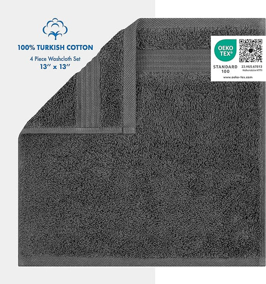 Cotton Paradise 100% Cotton Turkish Washcloth Set for Bathroom, 4 Piece Soft Absorbent Small Hand Face Towels Wash Rags, Dark Gray