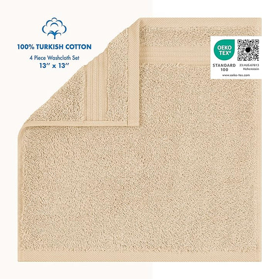 Cotton Paradise 100% Cotton Turkish Washcloth Set for Bathroom, 4 Piece Soft Absorbent Small Hand Face Towels Wash Rags, Beige
