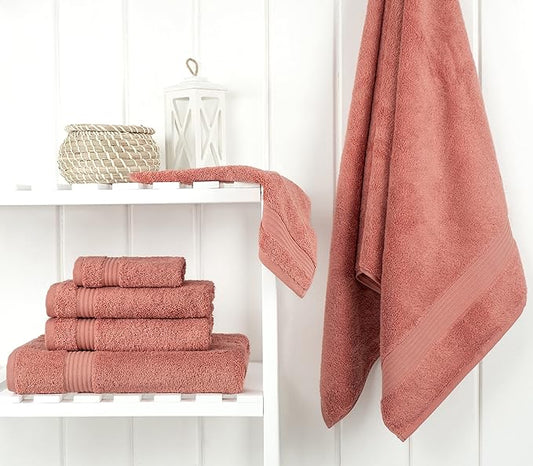 Cotton Paradise 6 Piece Towel Set, 100% Cotton Soft Absorbent Turkish Towels for Bathroom, 2 Bath Towels 2 Hand Towels 2 Washcloths, Coral Towel Set