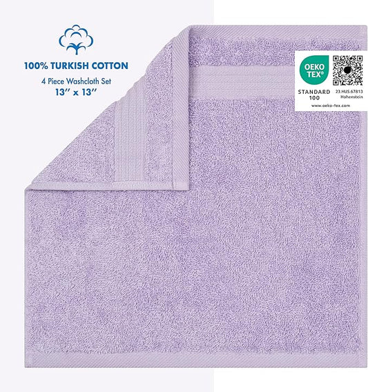 Cotton Paradise 100% Cotton Turkish Washcloth Set for Bathroom, 4 Piece Soft Absorbent Small Hand Face Towels Wash Rags, Lilac