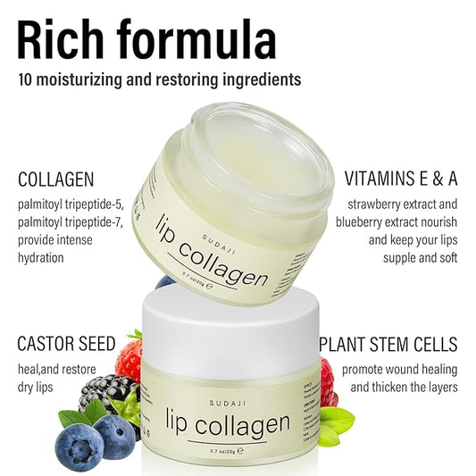 Lip Collagen + Peptide 0.7oz, Collagen Lip Mask with Vitamins E, A -Lip balm to Nourish & Hydrate Lips, Lip Moisturizer for Gentle exfoliating