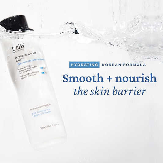 belif Moisturizing Bomb Hydrating Toner - Ceramide Milky Texture, Strengthens Skin Barrier, Soothing & Repair Serum Essence, Ultra-Hydrating 2-in-1 Toner & Moisturizer, Korean Skincare, 5.07 Fl Oz