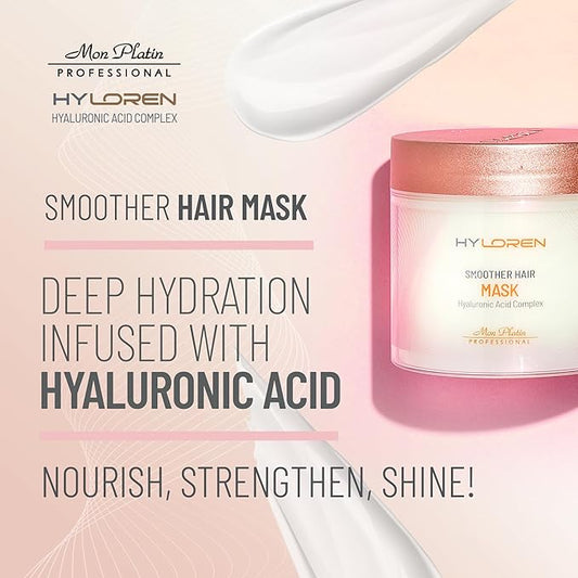 Mon Platin Professional Hair Mask for Damaged Hair & Straightened, 500ml - HYLoren Smoother with Hyaluronic Acid, Deep Conditioning Treatment, Anti-Frizz Conditioner