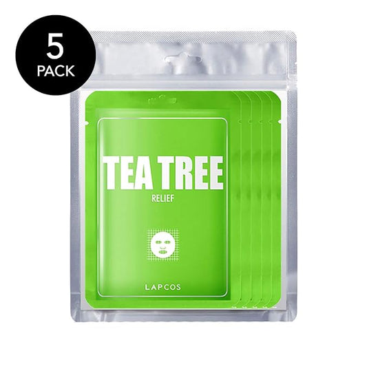 LAPCOS Tea Tree Sheet Mask, Daily Soothing Face Mask, Treats Acne & Clears Pores, Korean Beauty Favorite, 5-Pack