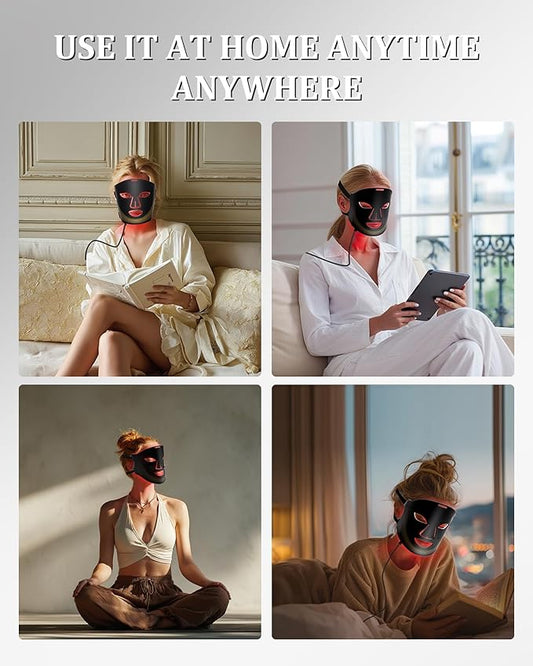 Red Light Therapy Mask for Face - 4 Light Modes with 660nm 850nm Wavelength, Blue & Red Light Therapy Face Mask, 2000mAh, Eye Protection, Timer & Travel-Friendly Design for Home Skincare