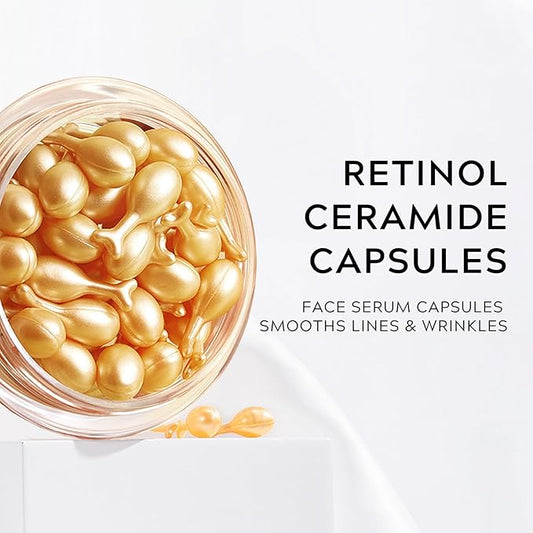 Retinol Serum for Face Anti-Aging Wrinkle with Ceramide - Anti-Aging Night Serum Capsules for Face Firming and lift, Light-weight & Hydrating Care, Travel Friendly | 30 Capsules