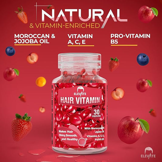 ELEVATE Hair Treatment Serum Oil Capsules - Conditioning Repair & Moisturizing Formula with Argan Jojoba Oils Vitamins A C E Pro Vitamin B5 Healthier Smooth Silky Thicker for Softness Shine
