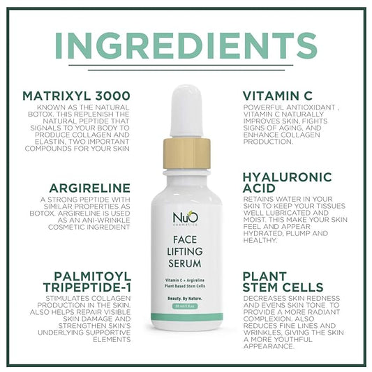 nuorganic Face Lifting Serum with Plant Stem Cells & Matrixyl 3000 - Advanced Anti-Aging to Minimize Fine Lines & Wrinkles - Vegan & Cruelty Free (1fl Oz)