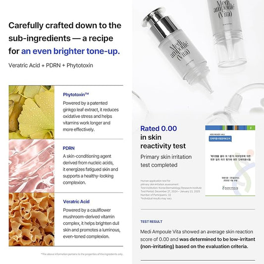MILLIMILLI MediAmpoule – Vita Serum | Brightening Vitamin C Face Ampoule with Vitamin E, B5 & Antioxidants | Dark Spot Corrector, Tone-Up & Radiance Booster Korean Skin Care, 15ml
