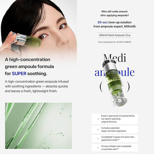 MILLIMILLI MediAmpoule – Cica Serum | Calming Centella Asiatica Face Ampoule with TECA & Panthenol | Hydrating Korean Skin Care Serum for Face, 15ml