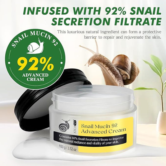 Snail Mucin 92% Repair Serum Cream - Face Moisturizer Hydrating Anti Age Firming Wrinkle Reduction Daily Repair Snail Mucin Face Cream for Dry & Sensitive Skin, All Skin Types-100 g/3.52 oz