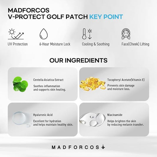 V-Protect Golf Patch – UV Protection, Hydration & Lifting Face Mask for Outdoor Sports | Korean Skincare Patch for Golf, Hiking, Tennis | 10 Masks (S Size)
