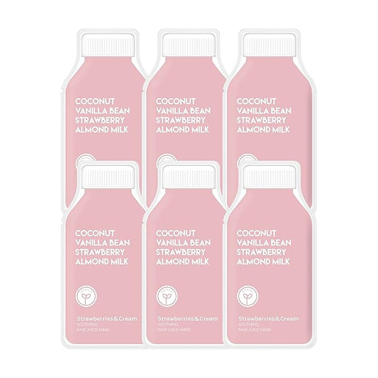 ESW Beauty Strawberries & Cream - Soothing Raw Juice Face Mask (6-Pack) - Calming with Coconut, Vanilla Bean, Almond Milk & Strawberry for Sensitive Skin - Reduces Redness & Nourishes
