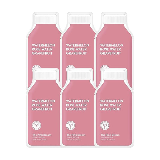 ESW Beauty The Pink Dream - Moisturizing Raw Juice Face Mask (6-Pack) - Hydrating with Watermelon, Rose Water & Grapefruit for Dry, Sensitive Skin - Vitamins C & E for Radiance