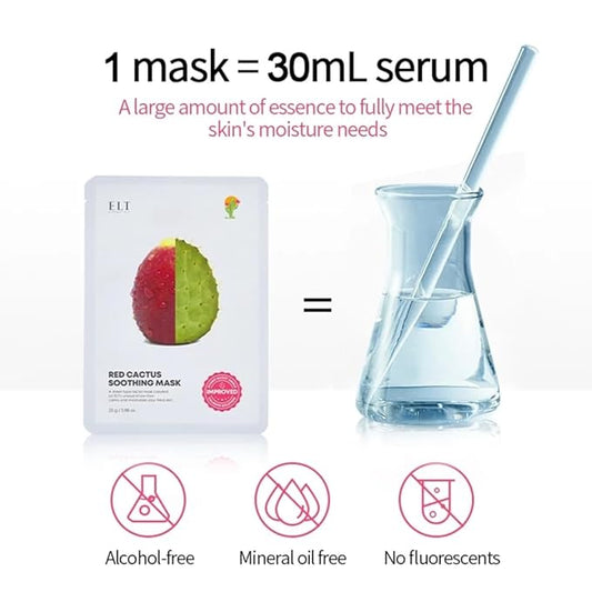 ELT Red Cactus Extract (5,000 ppm) (25 g / 0.88 oz) 10 EA Korean Face Masks, Brightening Mask, Anti-Aging Wrinkle Fighting, Deep Collagen Mask, Korean Skin care