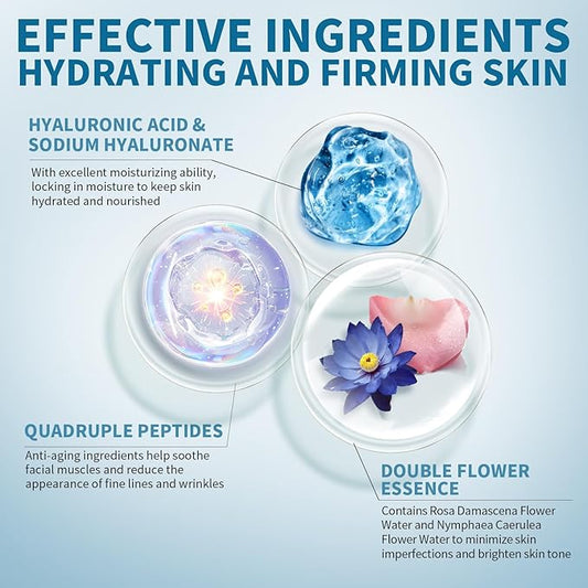 Hydrating and Firming Essence Sheet Face Masks with Quadruple Peptide and Sodium Hyaluronate, Moisturizing & Anti-Wrinkle, Safe for Sensitive Skin, Pack of 10