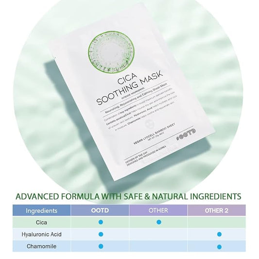 Cica Calming Mask for Face Sensitive Irritated Skin, Soothing, Moisturizing, Korean Anti Aging Face Mask, Eve Vegan, Chamomile, Hyaluronic Acid 10EA