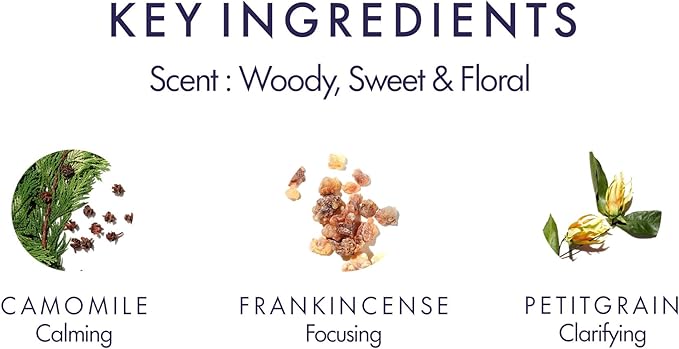 • Product Benefits : Calms and focuses the mind with Chamomile, Petitgrain and Frankincense essential oils.