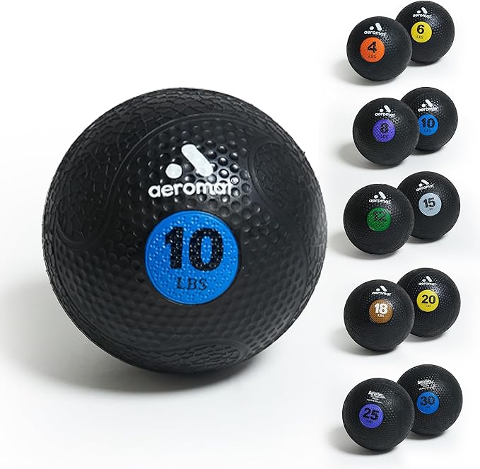 • DURABLE, WELL-BALANCED, AND COLOR-CODED DESIGN: This Aeromat Extreme Elite medicine ball set is made from tough synthetic rubber, built to endure demanding workouts. The 10lb medicine ball features a striking blue color, allowing for easy identification in any workout setting. With its shape retention, this weighted medicine ball provides the stability and balance required for weight balls for exercise routines, ensuring long-lasting performance in any fitness program.