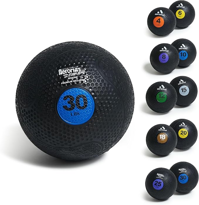 • DURABLE, WELL-BALANCED, AND COLOR-CODED DESIGN: Our Aeromat Extreme Elite 30lb Medicine Ball features a striking blue color, allowing for easy identification in any workout setting that uses weight balls. Crafted from durable synthetic rubber, it maintains its shape and offers reliable stability and balance during intense exercises. Suitable for long-term use, it supports a diverse range of fitness routines.