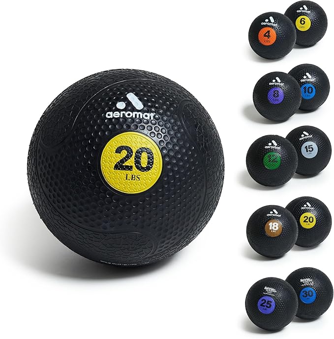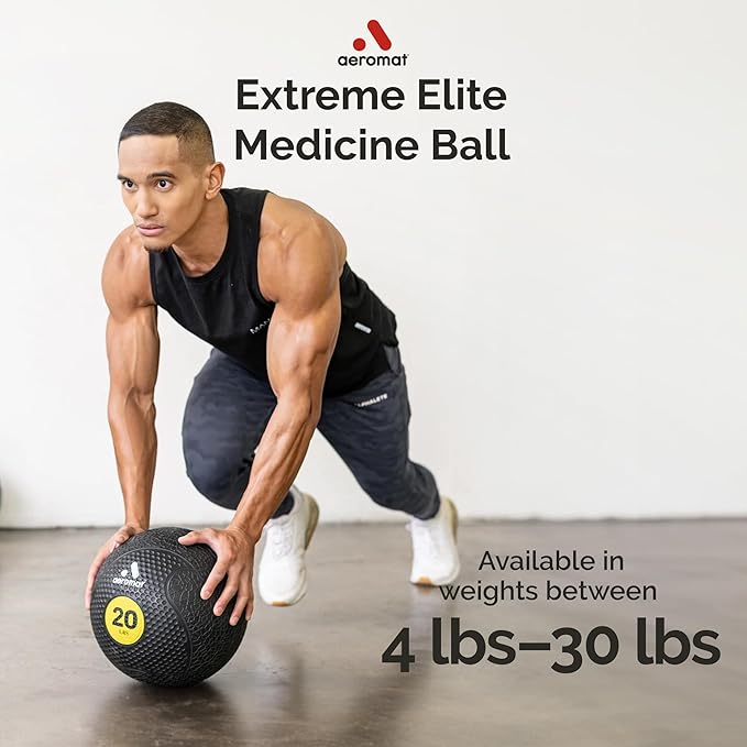• DURABLE, WELL-BALANCED, AND COLOR-CODED DESIGN: This Aeromat Extreme Elite medicine ball set is made from tough synthetic rubber, built to endure demanding workouts. The 20lb medicine ball comes in a bright yellow color, making it easy to identify during workout. With its shape retention, this weighted medicine ball provides the stability and balance required for weight balls for exercise routines, ensuring long-lasting performance in any fitness program.