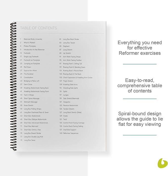 • EQUIPMENT MASTERY: This dedicated guidebook will help you master the details of your Balanced Body Pilates equipment. It provides clear instructions on proper usage so you can safely harness your Reformer’s full potential.