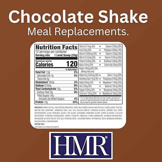 HMR 120 Chocolate Shake Meal Replacement Powder | Chocolate Shake Mix to Support Healthy Weight Loss | 12g of Protein | Nutritional Drink | Low Calorie Food | 12 Servings