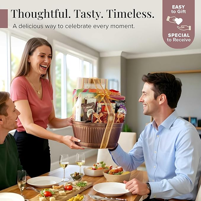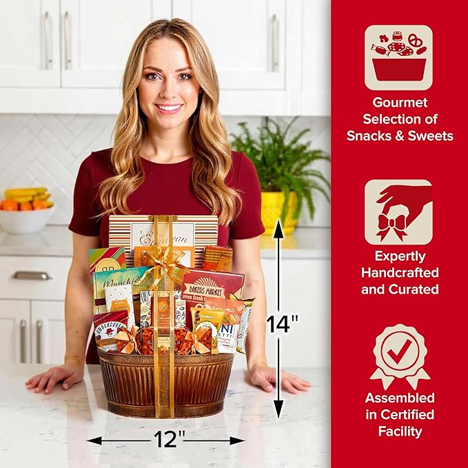 • GOURMET GIFT BASKETS: Send joy with individually wrapped sweets and snacks handcrafted for your recipient. Beautifully packaged, this gift basket is perfect for congratulations, appreciation, thank you, birthday, retirement, or engagement.