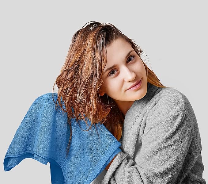 • Premium Quality Construction- Woven with 100% ring spun cotton that are supremely soft and breathable while being strong and durable to hold up to daily use. Enjoy the luxury of wrapping yourselves in bath towels after shower, drying your hands or cleaning your face with a washcloth.