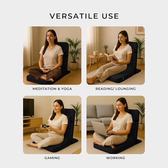 • Ergonomic Design for Ultimate Comfort: Friends Of Meditation Relaxing Buddha Meditation Chair is designed to enhance comfort during Sukhasana posture. Featuring a detachable rectangular back support and half-moon zafu cushion, this meditation chair helps in proper alignment, reducing discomfort and numbness. The floor chair with back support ensures you stay relaxed and focused throughout your practice, making it the ideal choice for meditation, yoga, and prolonged sitting.
