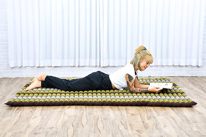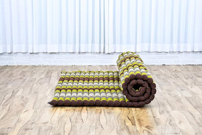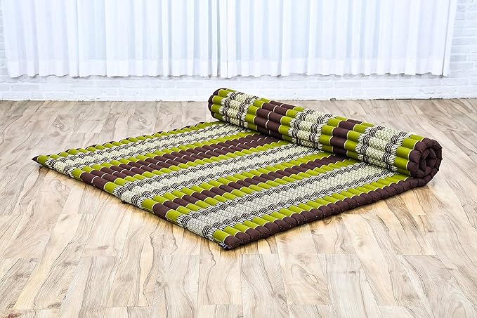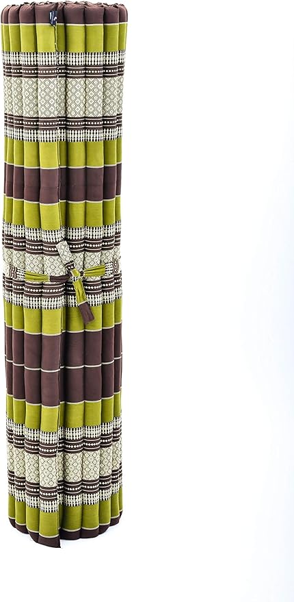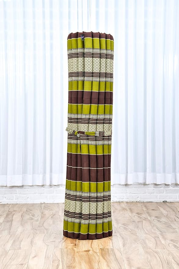Leewadee - Foldable Floor Mattress - Japanese Roll Up Futon -Trifold Tatami Mat- Guest Floor Bed - Camping Mattress - Thai Massage Mat, Kapok Filled, 75 x 57 inches, Brown Green