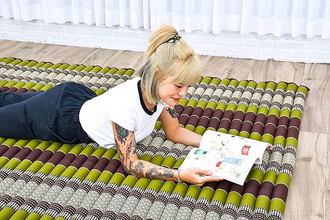 • The Thai tri-fold mattresses, full size, for adults and kids is padded with kapok. The stable and breathable fiber used allows for a pleasant and comfortable seating or sleeping position