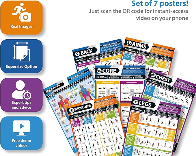 • Scan, Watch, Train Smarter – Each section includes scannable QR codes linking to free demo videos. Follow expert form, avoid injuries, and enhance your training on your own terms. This exercise poster brings hands-on learning right to your wall.