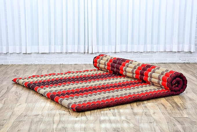 Leewadee - Foldable Floor Mattress - Japanese Roll Up Futon -Trifold Tatami Mat- Guest Floor Bed - Camping Mattress - Thai Massage Mat, Kapok Filled, 75 x 57 inches, Red