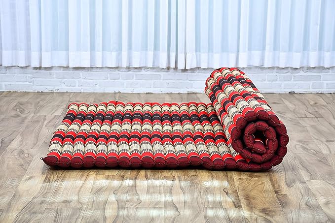 • The Thai tri-fold mattresses, full size, for adults and kids is padded with kapok. The stable and breathable fiber used allows for a pleasant and comfortable seating or sleeping position