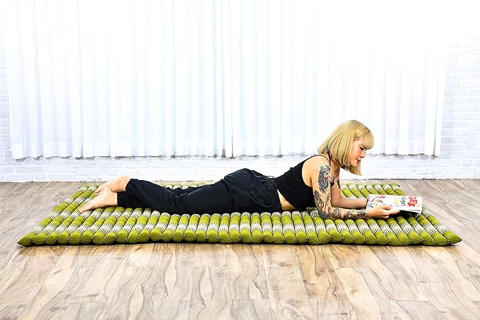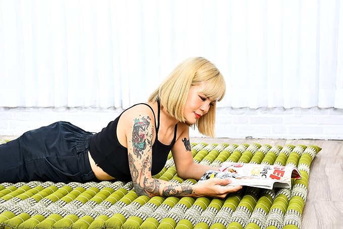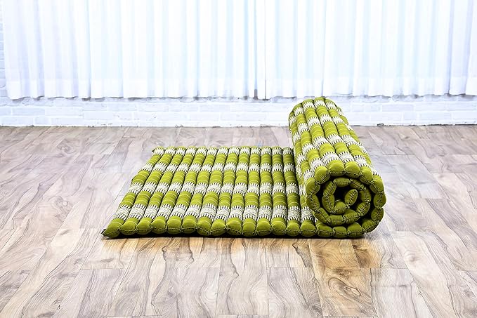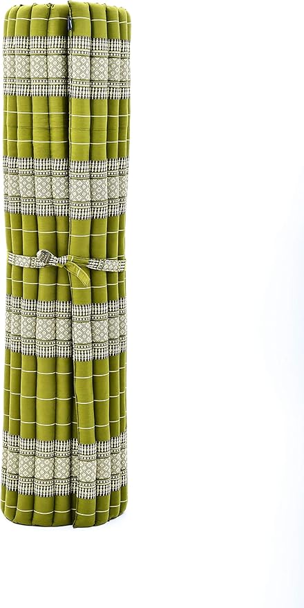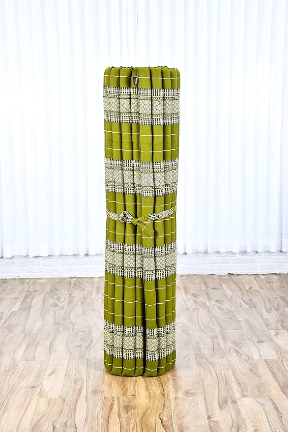 Leewadee - Foldable Floor Mattress - Japanese Roll Up Futon -Trifold Tatami Mat- Guest Floor Bed - Camping Mattress - Thai Massage Mat, Kapok Filled, 75 x 57 inches, Green