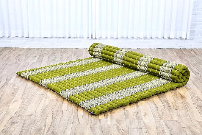 • The Thai tri-fold mattresses, full size, for adults and kids is padded with kapok. The stable and breathable fiber used allows for a pleasant and comfortable seating or sleeping position